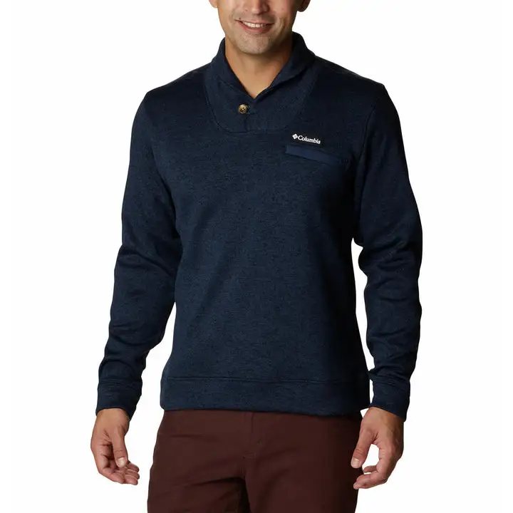 This light fleece is the casual layer you need on a brisk day or for extra warmth under a jacket. Get the best of both worlds with soft fleece and a sweater-like knit and classic shawl collar.